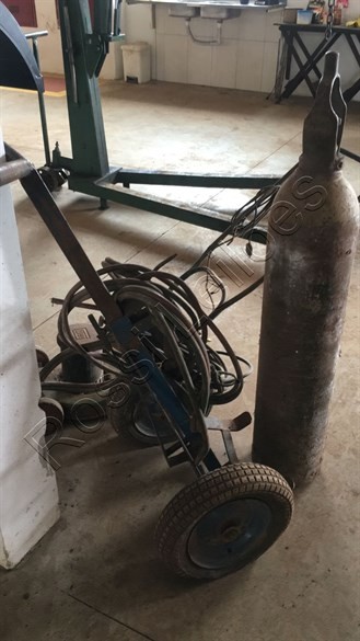 1 carrinho de carregar bujões de gás, 1 cilindro , cabos de maçaricoe 1 máquina de cortar grama