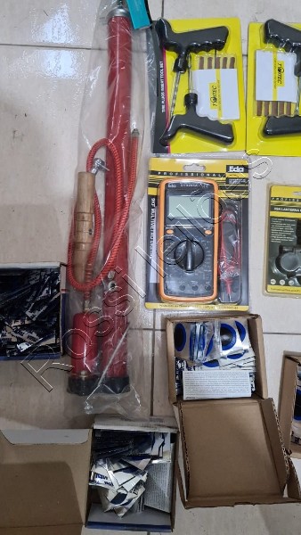 ( lote 7 itens) sem uso 3 kit reparo pneu sem camara 1 bomba manual 1 multímetro digital 1 lanterna 600 remendo vipal para pneus