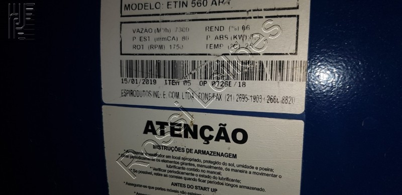 02 EXAUSTORES MOD. ETIN 560 AR4 VAZÃO (M3 H) 730 RPM 1750 ABS 3,4 KW. Ambos da marca ESPIROVENT.