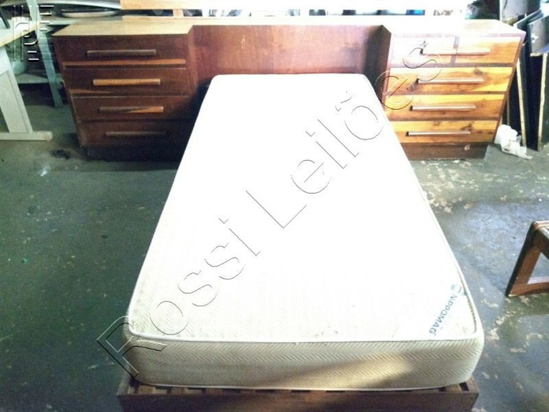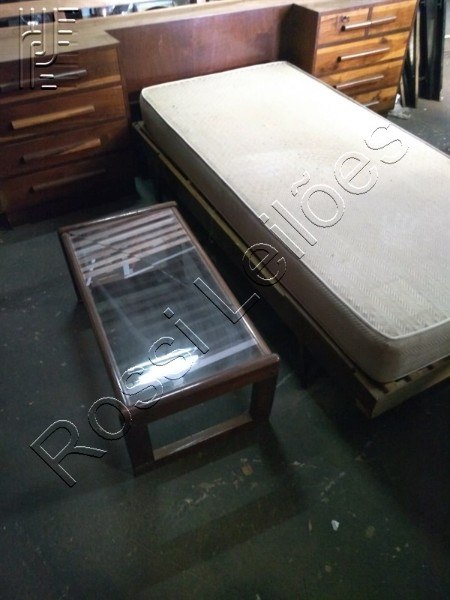 Jogo de Cama Antigo em Madeira Nobre c/ 09 Gavetas , Colchão Nippomag Magnetizado Terapêutico Ortopédico e 01 Mesa de Centro de madeira Nobre e tampo de vidro.