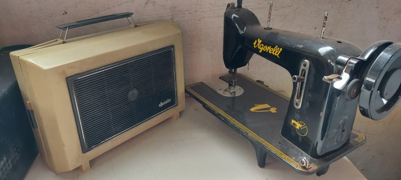 Lote com: 1 uni. Vitrola e 1 uni máquina de costura antiga