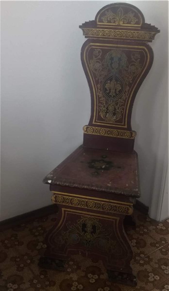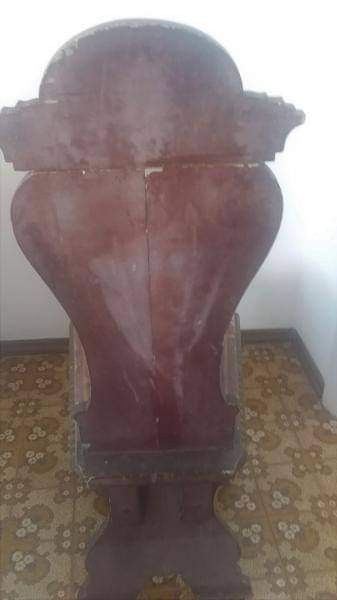 Cadeira Decorativa em Madeira Maciça, desenhos de frisos, pés e encosto alto, medindo 105x45x45