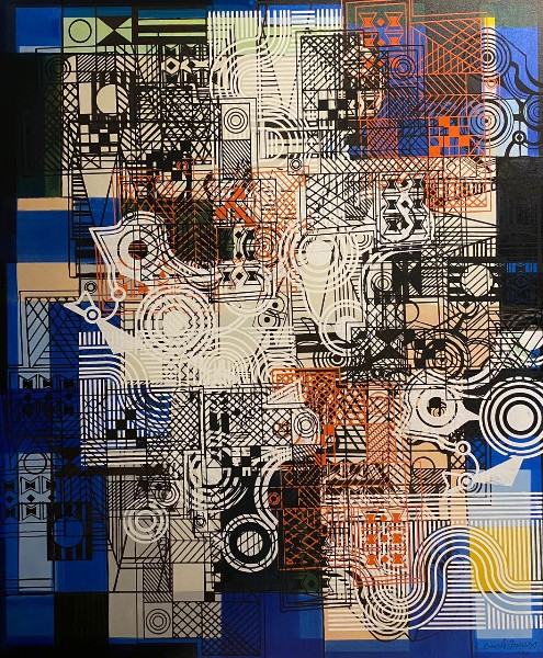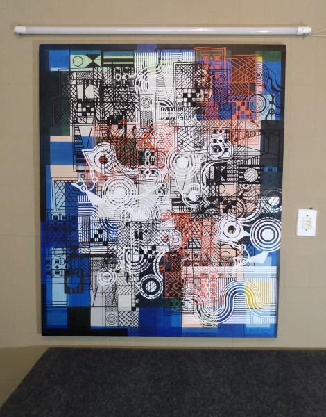 Quadro Roberto Burle Marx - 1986 - "Panneux" - tinta gráfica sobre tecido montado em estrutura de madeira (chassi), com moldura baguete de cedro. Assinado e datado no C.I.D. Medidas: 122 x 105