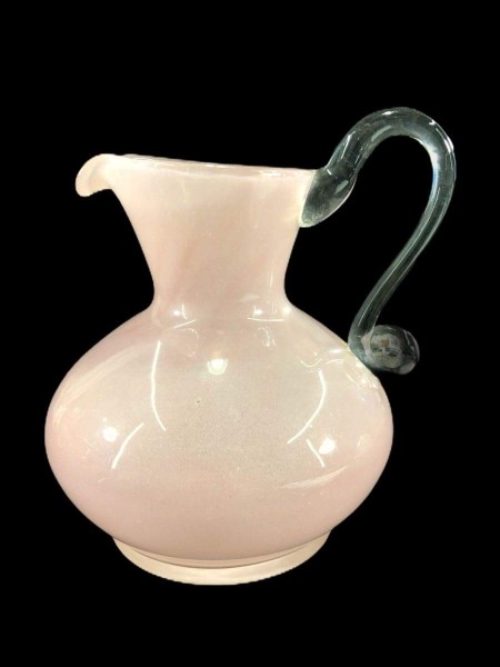 Jarra em vidro soprado, técnica de murano, tonalidade rosê, raro. MED: 18X16X15CM