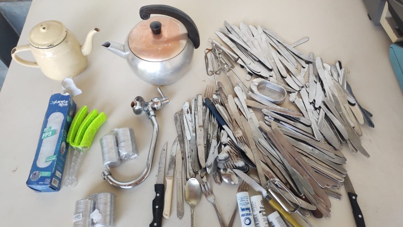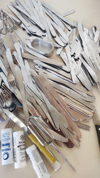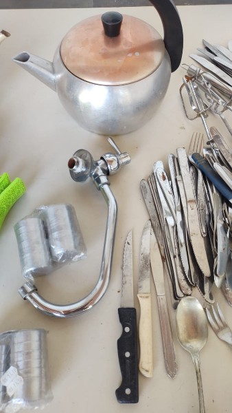 Lote com facas, bules antigos