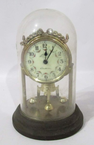 Relógio alemão, base circular escalonada, antigo, não testado e sem garantia de funcionamento. Medidas: 13,5cm de altura x 9,8cm de diâmetro