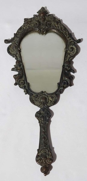 Espelho de mão, em bronze, raro, 25cm