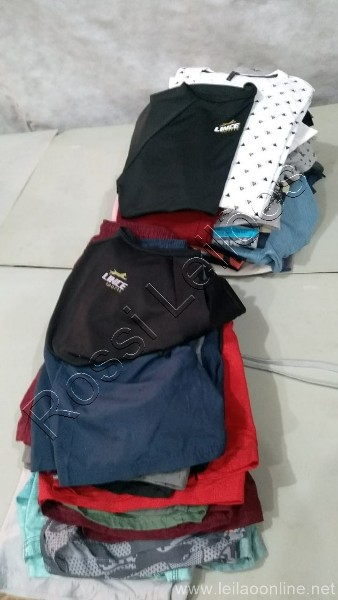 LOTE C/ APROX. 60 PEÇAS DE ROUPAS, SENDO: GRAVATAS, SHORTS, CAMISETAS, MASCULINO ADULTO, VÁRIOS TAMANHOS E MODELOS. TODOS SEM USO