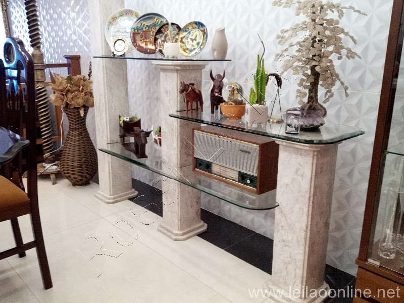 - ESTANTE EM MÁRMORE TRAVERTINO E PRATELEIRAS DE VIDRO – LINDA E ELEGANTE;