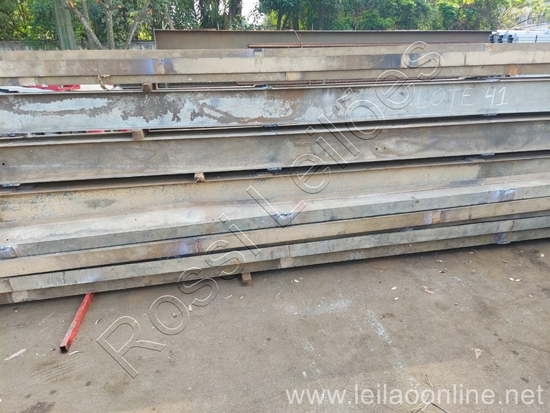 Lances por quilo. Aprox. 22 vigas de aprox. 4 a 6 metros. Peso aproximado. Pesos abaixo ou acima de 10% do informado serão ressarcidos pela comitente ou cobrados do arrematante.