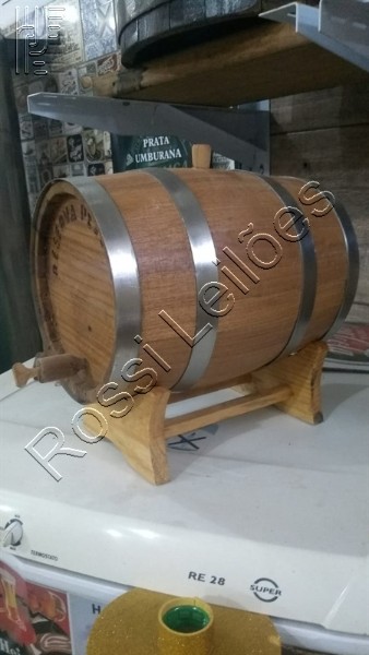 Barril de madeira de carvalho de 7 Litros. Cheio de Cachaça envelhecida.