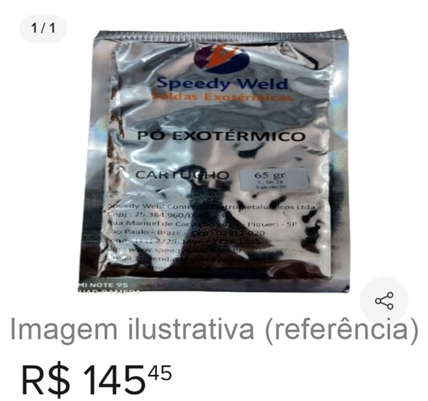 LOTE CONTENDO 08 UNIDADES DE SACHES DE SOLDA EXOTÉRMICA DISCO E IGNITOR.