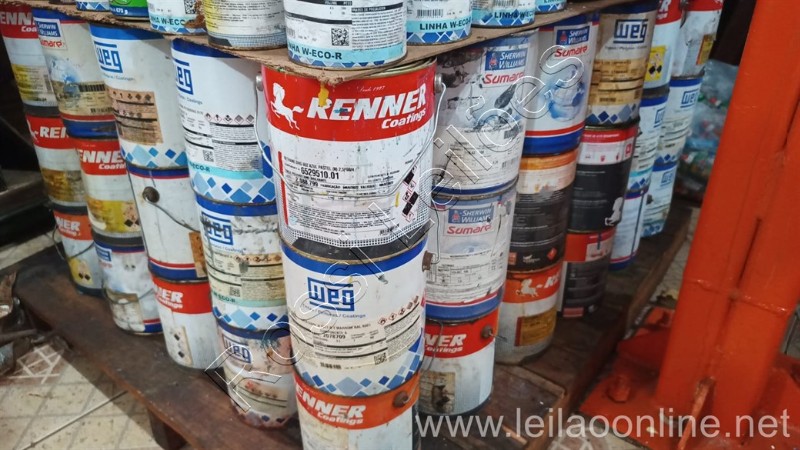 PALETE CONTENDO TINTAS , SOLVENTES, SPRAY E OUTROS ITENS DIVERSOS, SENDO; 90 LATAS DE 3,6 Litros NA PARTE DE BAIXO DO PALETE E 160 ITENS APROX. NA PARTE DE CIMA DO PALETE, CONFORME AS FOTOS.