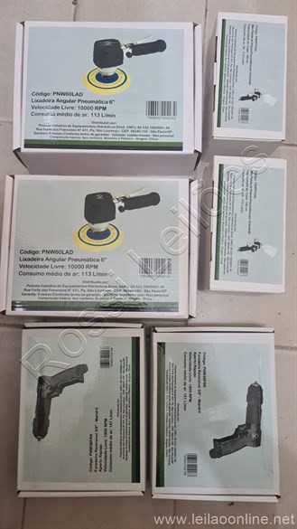 2 mini pistola de pintura 2 lixadeira angular pneumática 6" 2 furadeira reversível pneumática Todos itens sem uso.