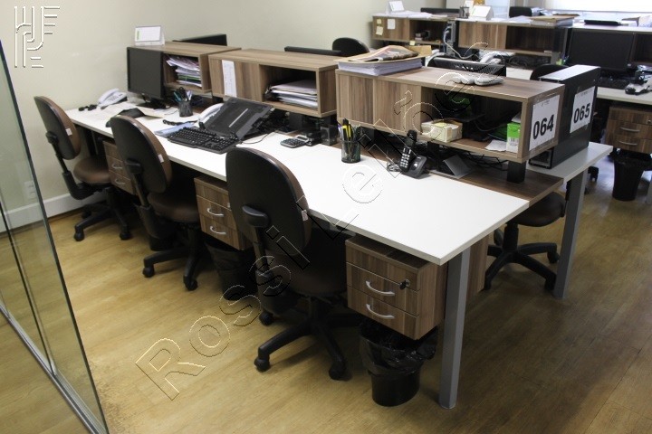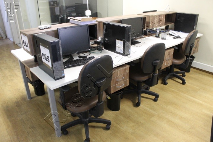 LOTE COM: 04 MESAS (estação de trabalho), CADEIRAS, ARMÁRIOS, ETC.