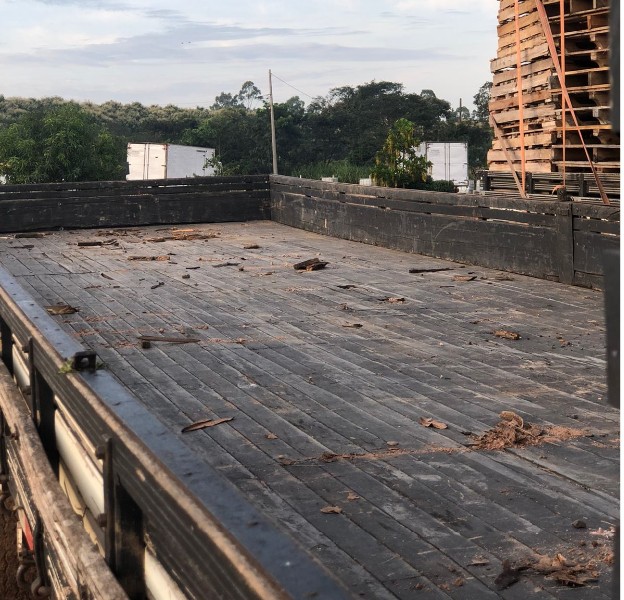 CAVALO SCANIA, MOTONIVELADORA (PATROL) CATERPILLAR, 08 CARRETAS, 10 BAUS, 100.000 folhas de PAPELÃO. 50.000 PALETS, 5.000 chapas de MADEIRIT, MÓVEIS RÚSTICOS DIVS. ETC.
