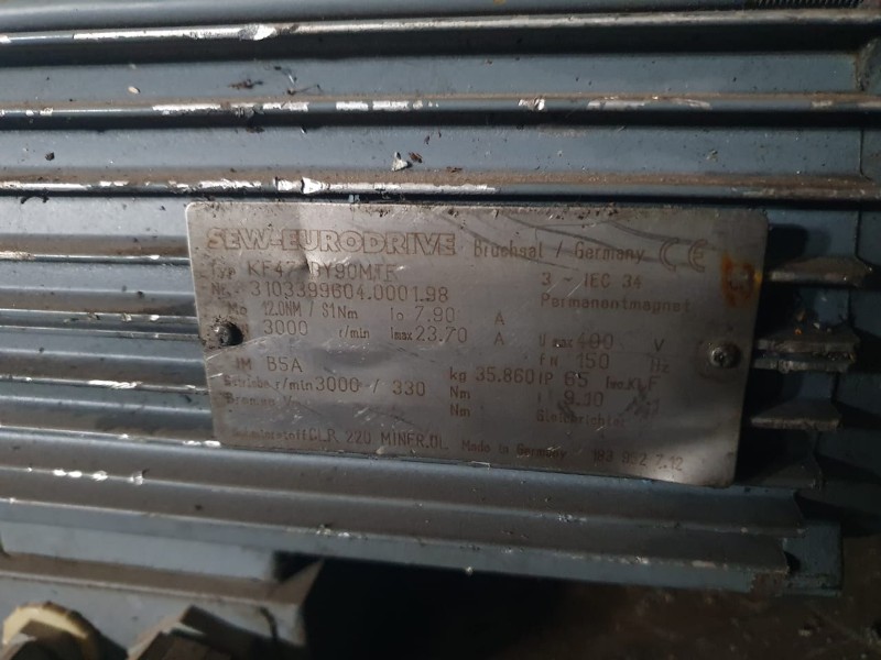 NO ESTADO. Lote com: 01 motoredutor sew Eurodrive 400 V. 3000 rpm tipo KF47 DY 90 MTF; 01 motoredutor Eberle 1 cv. 4 polos 220/380/440/760 V. Redução 25 - 1; 01 motoredutor Sew Eurodrive 1,1 KW - 4 polos 220/440 V