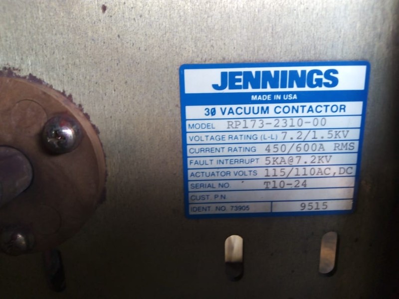 Contator Vácuo Jennines 7.2 / 1.5 KV. - 450 / 600 Amperes; obs.: Semi novo