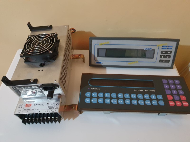 Lote com: 01 Fonte Mercúrio model. FXC2396 - 2/120; 01 Fonte Mean Wellington SP - 480 - 24; 01 Selecontrol MMI; 01 UniOP model. ER - 04 - 0045; obs.: Sem uso