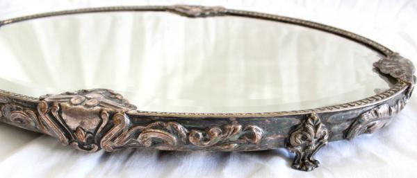 Bandeja espessurado à prata, com espelho 38 cm, espelho com marcas do tempo