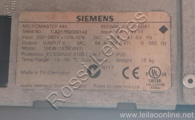 SIEMENS MICROMASTER 440 - 20 HP - 220V - Inversor de frequência