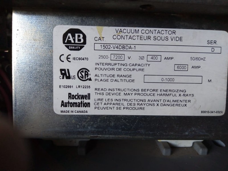 Contator Vácuo A-B -. 7.2 V. -. 400 amperes; obs.:Semi novo