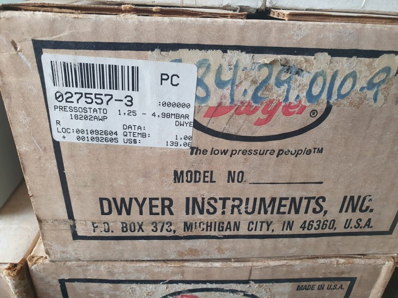 NO ESTADO. Lote com: 01 pressostato Vacuostato modelo DPD 1T - A3; 04 pressostato ECKARDT ; 05 pressostato ASHCROFT; 05 pressostato DWYER Séries 1800; 06 pressostato DWYER Séries 1900; obs.: todos novos