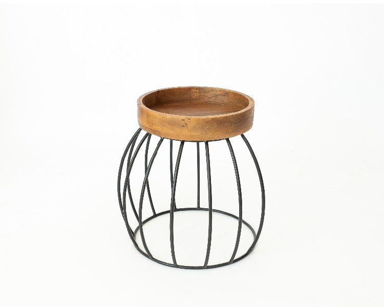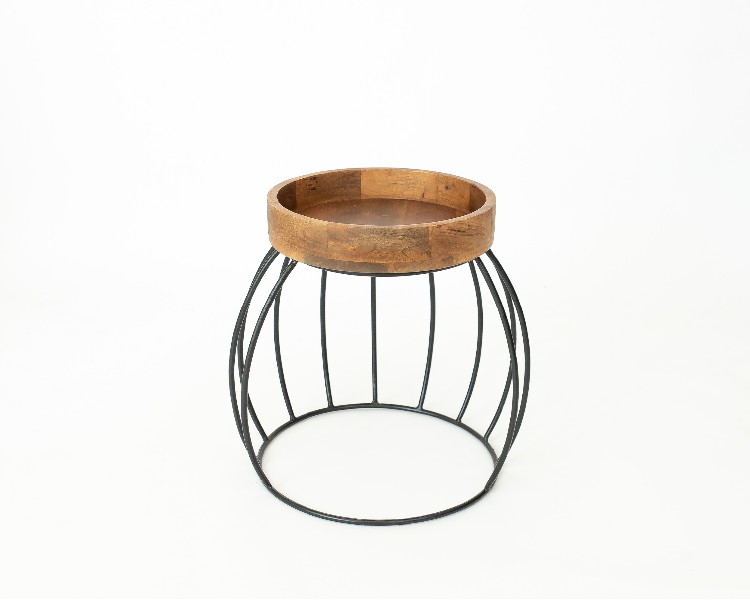 NO ESTADO. "Mesa Lateral- Modelo Listra- Cor Madeira e Preto Material do produto: Madeira e Ferro Largura 36 cm Altura: 48 cm Profundidade: 38 cm Diâmetro: 36 cm "