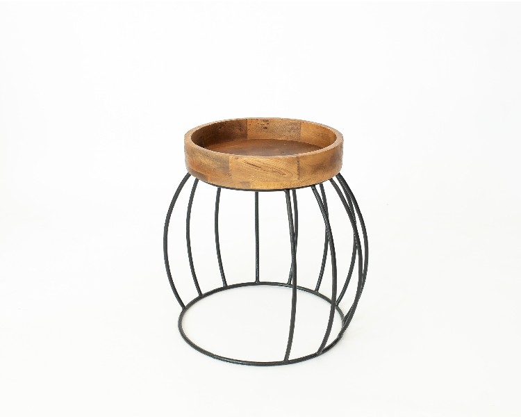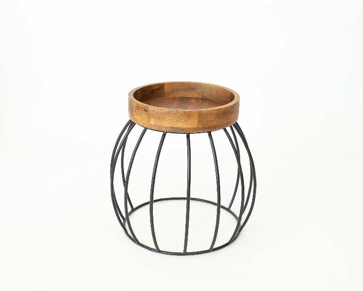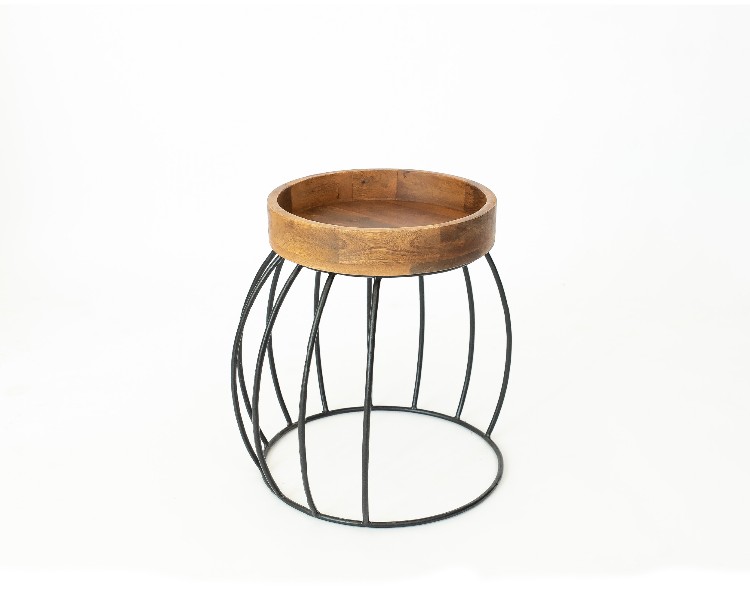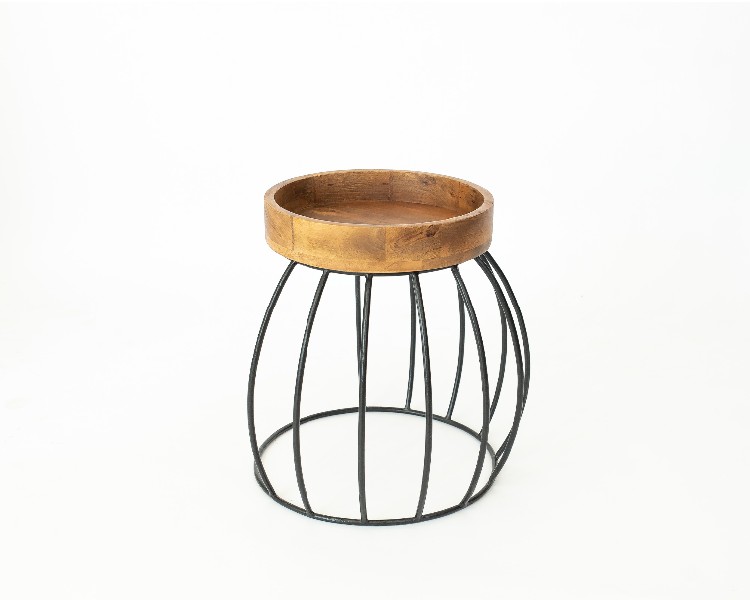 NO ESTADO. "Mesa Lateral- Modelo Listra- Cor Madeira e Preto Material do produto: Madeira e Ferro Largura 36 cm Altura: 48 cm Profundidade: 38 cm Diâmetro: 36 cm "