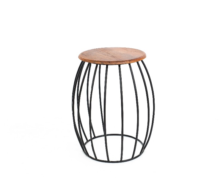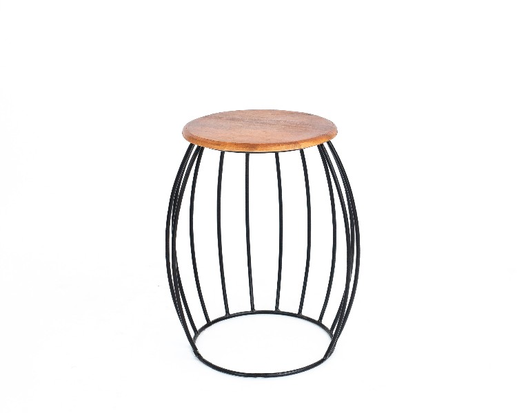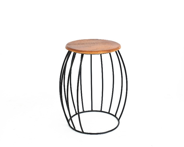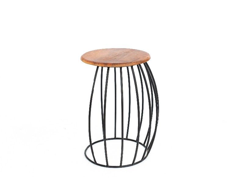 NO ESTADO. " Mesa Lateral- Modelo Fenice- Cor Madeira Material do produto: Madeira DE Mangueira Indiana e Ferro Preto Largura 35 cm Altura: 55 cm Profundidade: 37 cm Diâmetro: 35 cm "