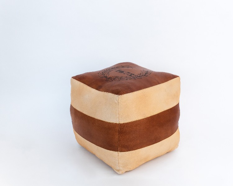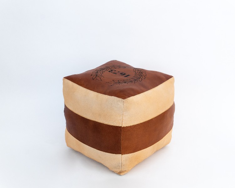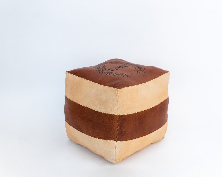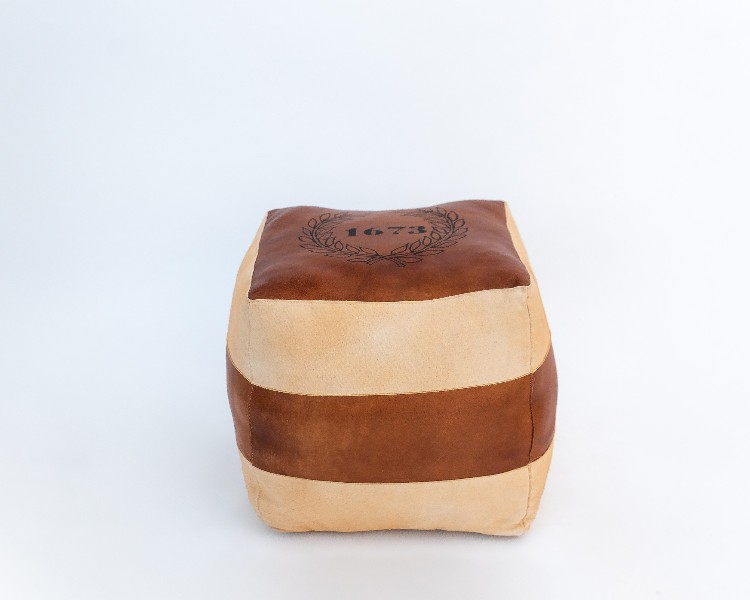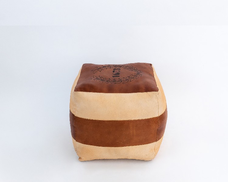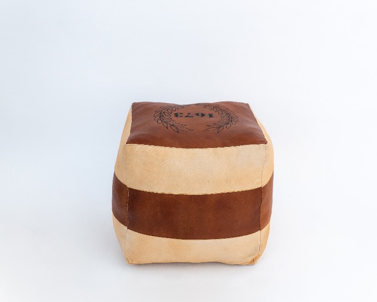 NO ESTADO. "TUI-OUT-1093 Puff - Modelo Ano 1673 Cor Marrom e bege Material do produto: Couro e Lona Largura 40 cm Altura: 45 cm Profundidade: 40 cm "