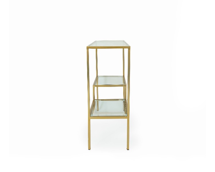 NO ESTADO. Aparador de Sala-Modelo Industrial -Tampo de Vidro Dourado- Cor Dourado Material do produto: Ferro e Vidro Largura 107 cm Altura: 98 cm Profundidade: 38 cm