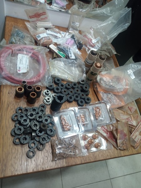 NO ESTADO: Lote com: 46 roldana esab varias medidas 30 eletrodo de plasma pt 70 70 bico plasma thermoplasma 10 eletrodo de plasma eutectic 48 eletrodo dee plasma sumig longo 05 bico de plasma eutectic - 15 pinça tig 2,4 13 capa curta 02 bico contato harris 12 pinça tig 11 porta pinça tig 1/8 02 arruela plasma eutectic 03 bocal de tig 8 26 porta pinça 2,4 01 bocal tocha robotec 03 bocal longo oximig