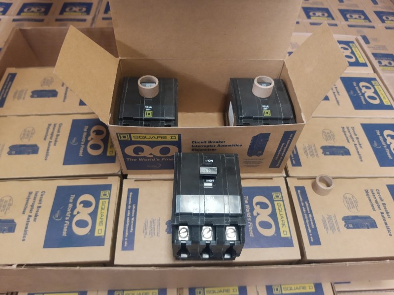 Lote com: 12 unid. Disjuntor Square - Marca Schneider - Mod. Square QO - 60A - 3 polos - 120/24 Vac - 10 KA - Sem uso