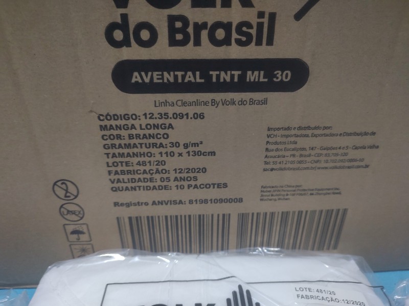 Lote com 100 unidades de Aventais Descartaveis Manga Longa , Marca Volk do Brasil , modelo TNT ML 30 g - sem uso