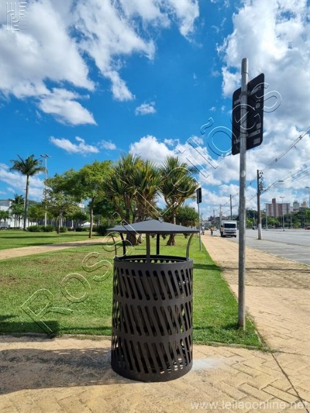 LIXEIRA EM AÇO CARBONO COM PINTURA EPOXI. BALDE DE PLÁSTICO 100 LTS - Altura 1.050 mm largura 720 mm Milimetros