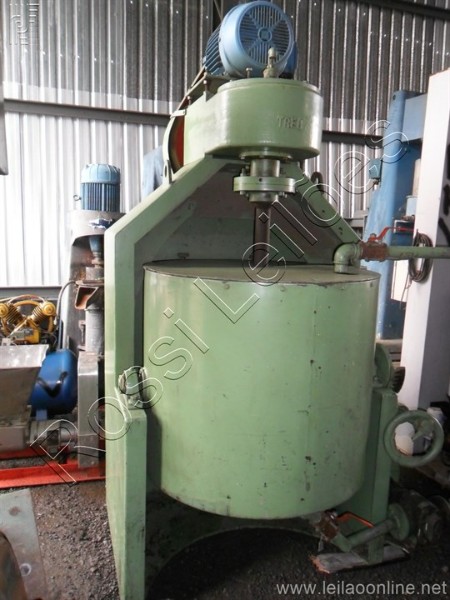 Tacho basculante em aço inox Tampa bi-partida Marca: TREU Medidas do tacho: Altura: 840mm x Diâmetro 890mm x Diâmetro do eixo 2,5" Capacidade: 500 lts Motor: WEG Potência: 20CV Redução no volante Tensão de corrente: 220/380/440 V Bomba de engrenagem com motor para retorno do produto entrada e saída de 2"