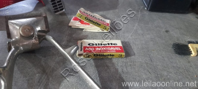 - 2 máquinas manuais Antigas de Cortar Cabelo - Aparelho Barba Antigo - 2 caixas Gillette Antigas - Secador Cabelo Antigo Vermelho.