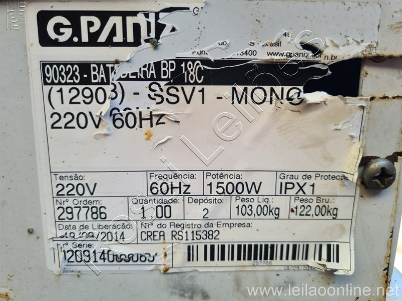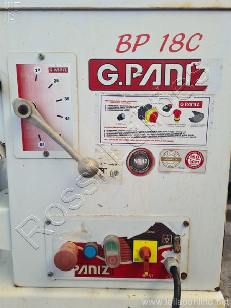Marca: G. PANIZ Modelo: BP-18C Altura: 1110 mm Largura: 500 mm Comprimento: 900 mm Capacidade: 18 Litros Potência: Motor de 1 CV, 4 pólos Velocidade: 1 vel.: 85 RPM 6 vel.: 240 RPM