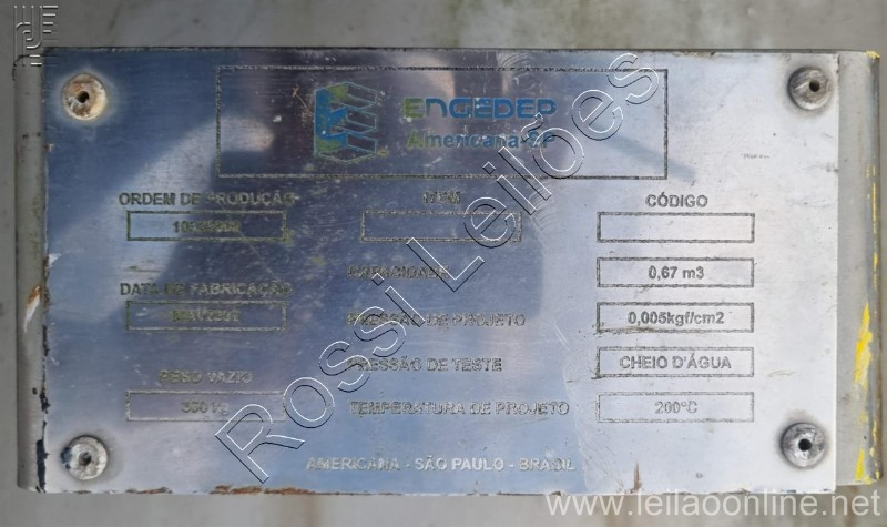 Medidas aproximadas: Altura total 1.700mm Medida cônica 0.850 mm Medida do corpo 0.800 mm Diâmetro 0.900 mm Ano de fabricação: 2002 Peso vazio: 330 Kg