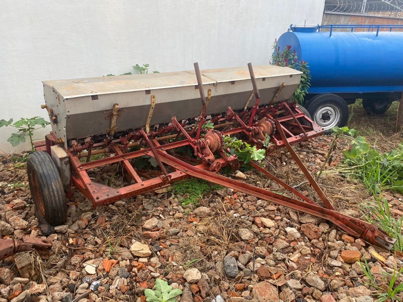 Semeadeira marca Semeato de 7 linhas, caixa de aço inox.
