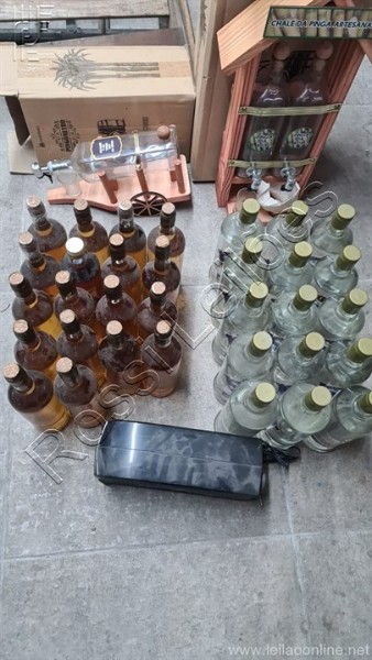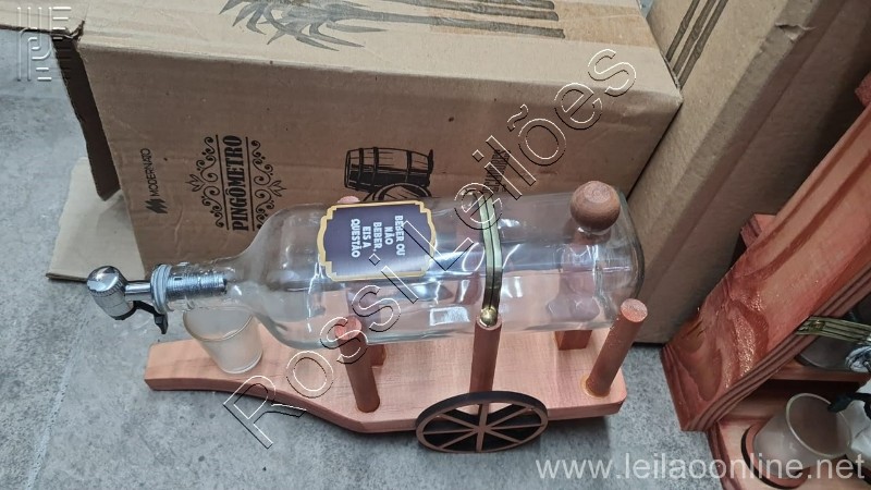 ( 36 itens) 1 pingometro duplo formato chale, 1 pingometro carroça, 15 garrafas de vodka artesanal, 18 garrafa cachaça artesanal itens sem uso 1 nobreak usado .