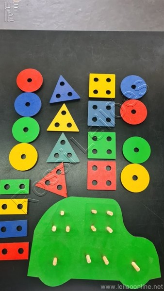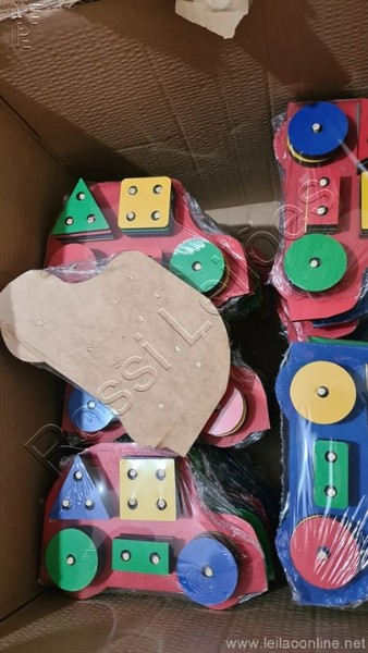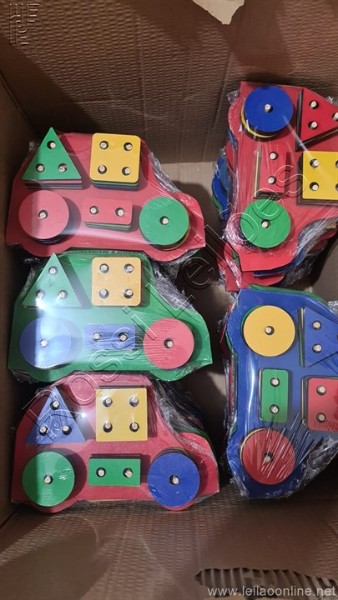 Lote ( 40 itens ) brinquedo carrinho educativo geométrico em mdf com 21 peças, medida 23cm x 15cm. Sem uso embalado