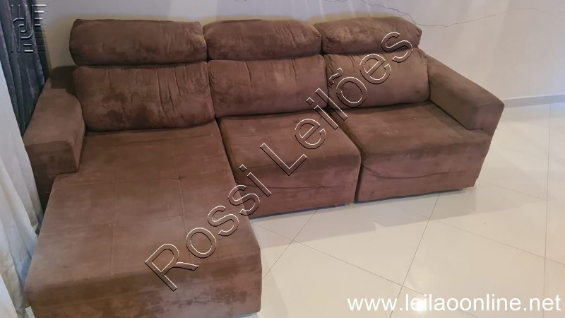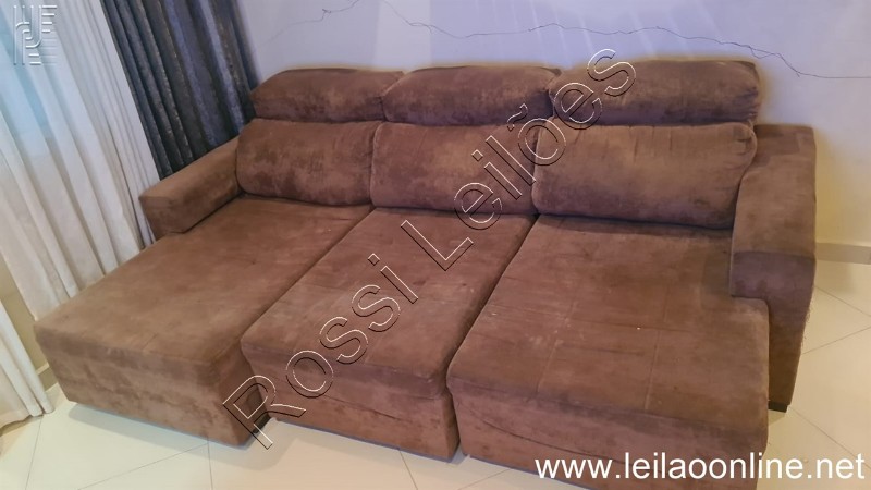 (8 itens) Sofá retratil medida 2,60 + Espelho 1,18 x 1,26 + Aparador 1,20 x 0,40 + Mesa 1,20 x 0,90 + 4 cadeiras.