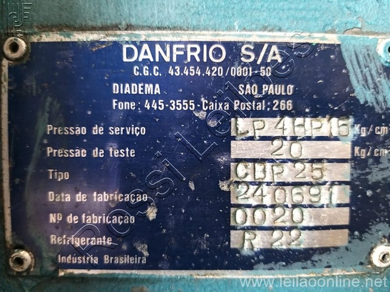 Pressão de teste: LP 4HP15 Pressão de teste: 20kg/cm² Tipo: CDP 25 Fabricação: 1991 Refrigeração: R22