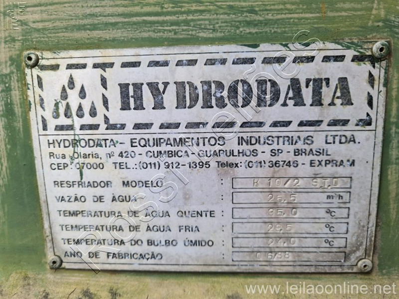 Resfriador modelo: K 10/2 STD Vazão de água: 25,5m³/h Temperatura de água quente: 35,00 °C Temperatura de água fria: 29,5 °C Temperatura do bulbo úmido: 24,0 °C
