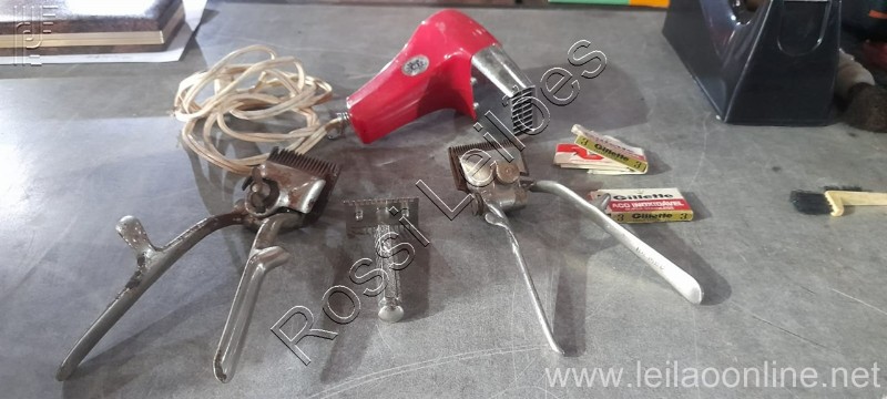 - 2 máquinas manuais Antigas de Cortar Cabelo - Aparelho Barba Antigo - 2 caixas Gillette Antigas - Secador Cabelo Antigo Vermelho.