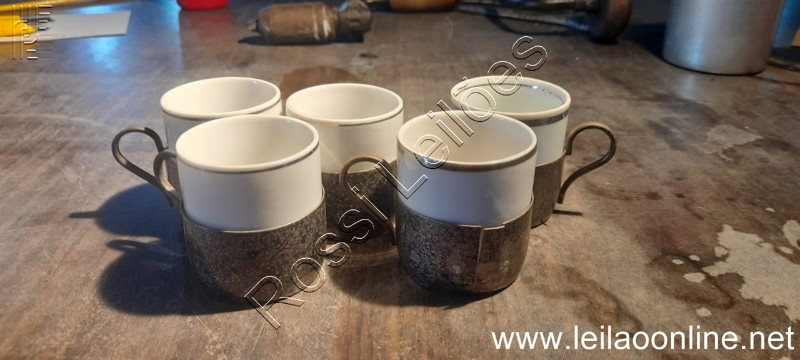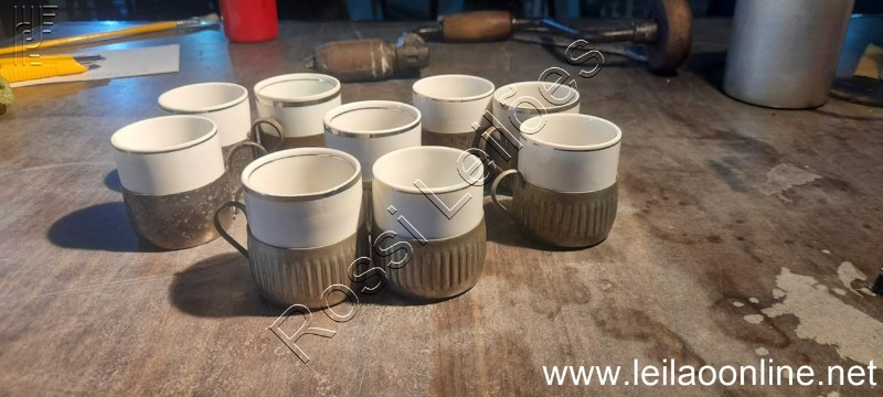 Lote com 9 xícaras café antigo Metal / porcelana