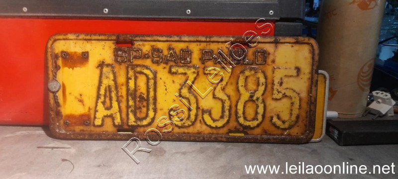 Placa amarela antiga traseira de carro ferro com lacre
