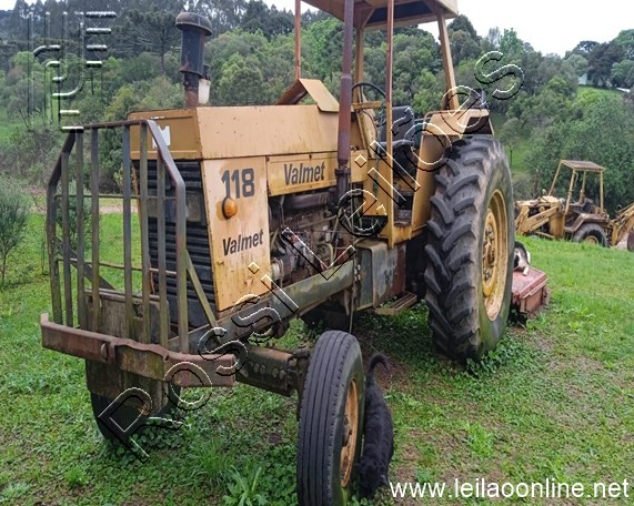 TRATOR AGRICOLA - VALMET 118 - 4X2 - 1986 NO ESTADO PLACA: AQB4734 - BAIXADO. N. Série: 11800600583. RENAVAM: 524496013. OBS: MÁQUINA ERA EMPLACADA, FOI BAIXADA NO DETRAN. ESTÁ PARADA HÁ MUITO TEMPO (PODENDO FALTAR PEÇAS). NECESSITA DE REVISÃO EM GERAL. VENDIDO NO ESTADO EM QUE SE ENCONTRA. M